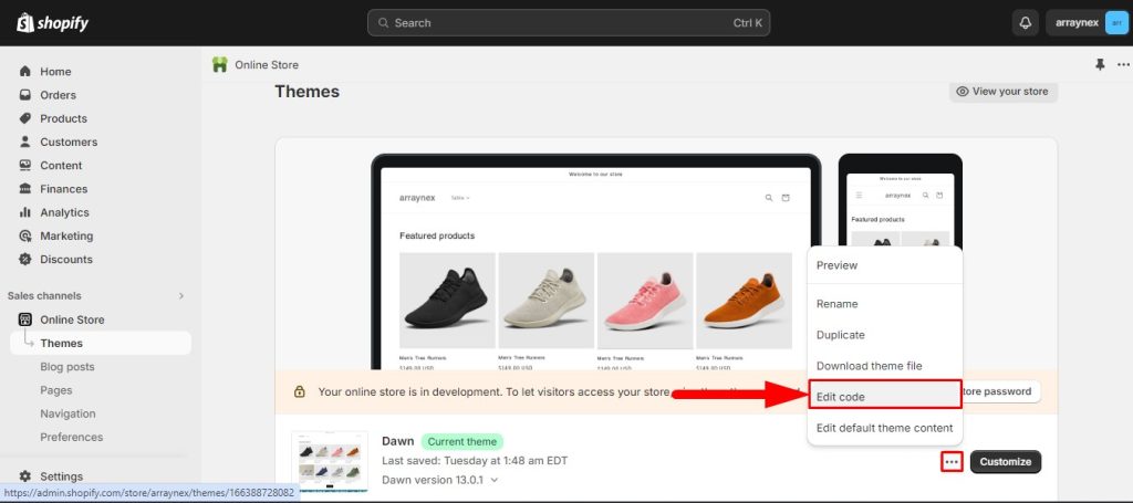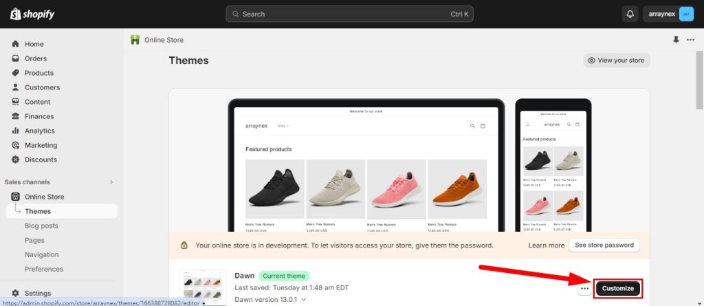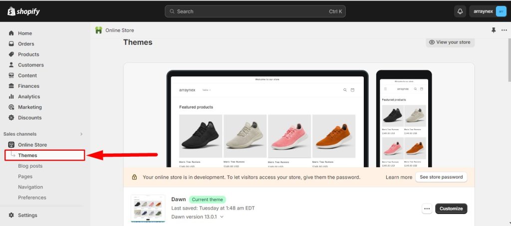 First Login Your Shopify Admin Pannel and Online Store > Themes