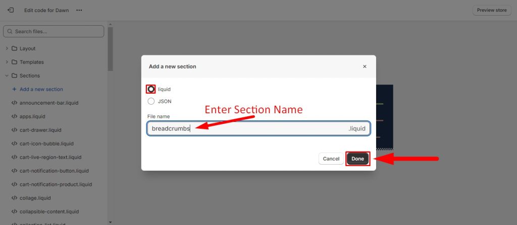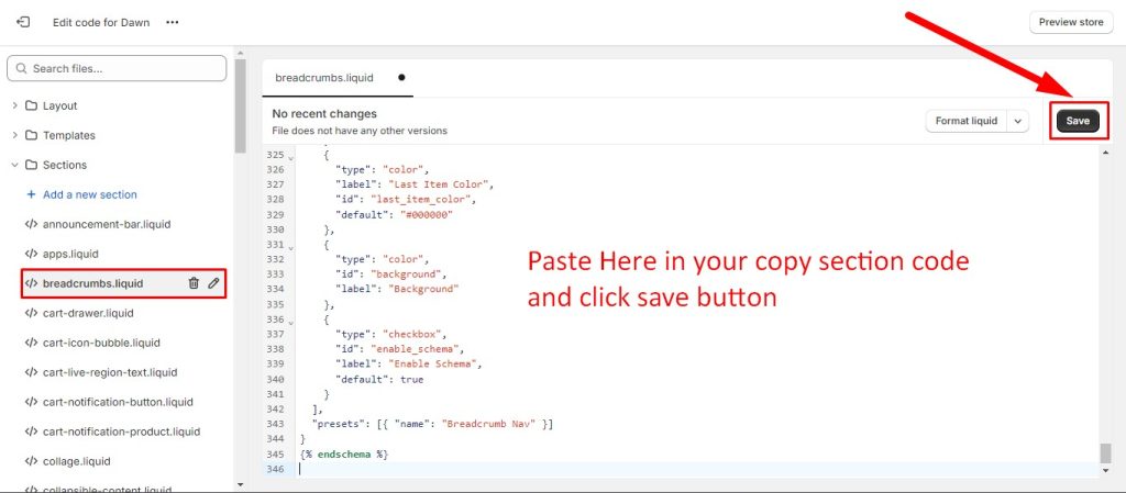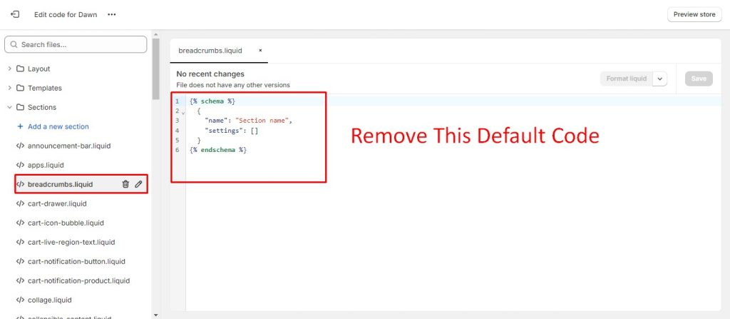 open you recently created liquid breadcrumbs file and remove default liquid code